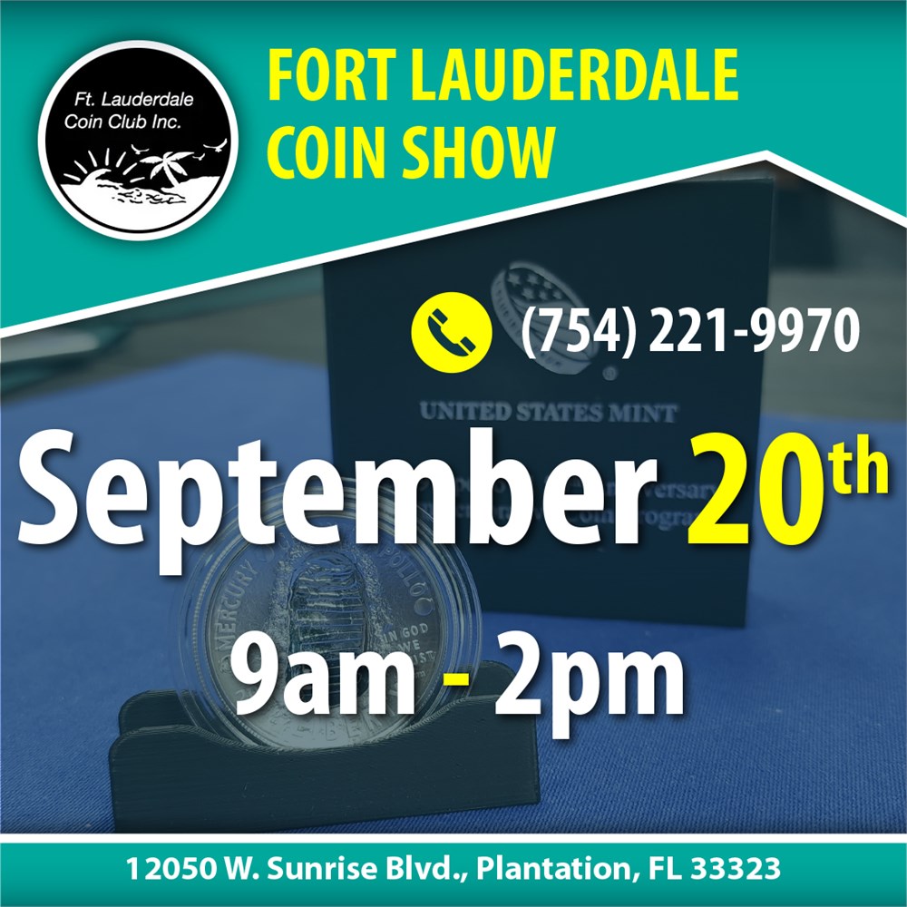FORT LAUDERDALE COIN SHOW - September 20th (Plantation, Florida) View Watchlist >