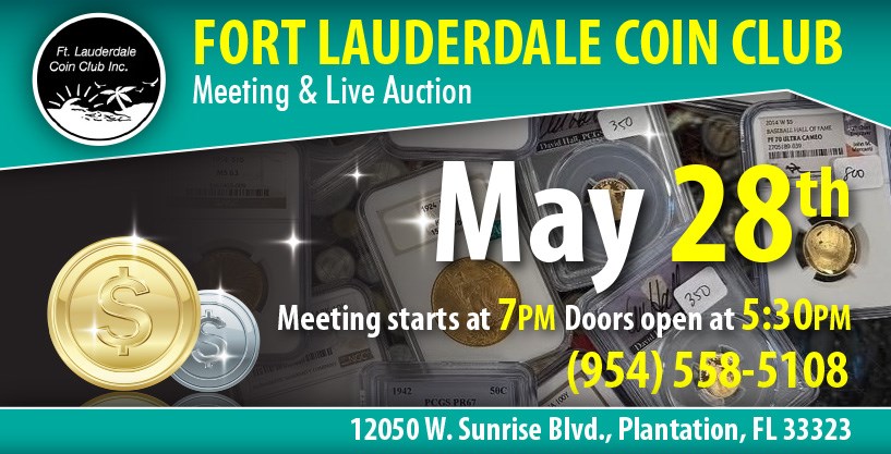 Looking to add that perfect piece to your collection? Be sure to attend the Fort Lauderdale Coin Club for our Monthly meeting and Coin Auction!