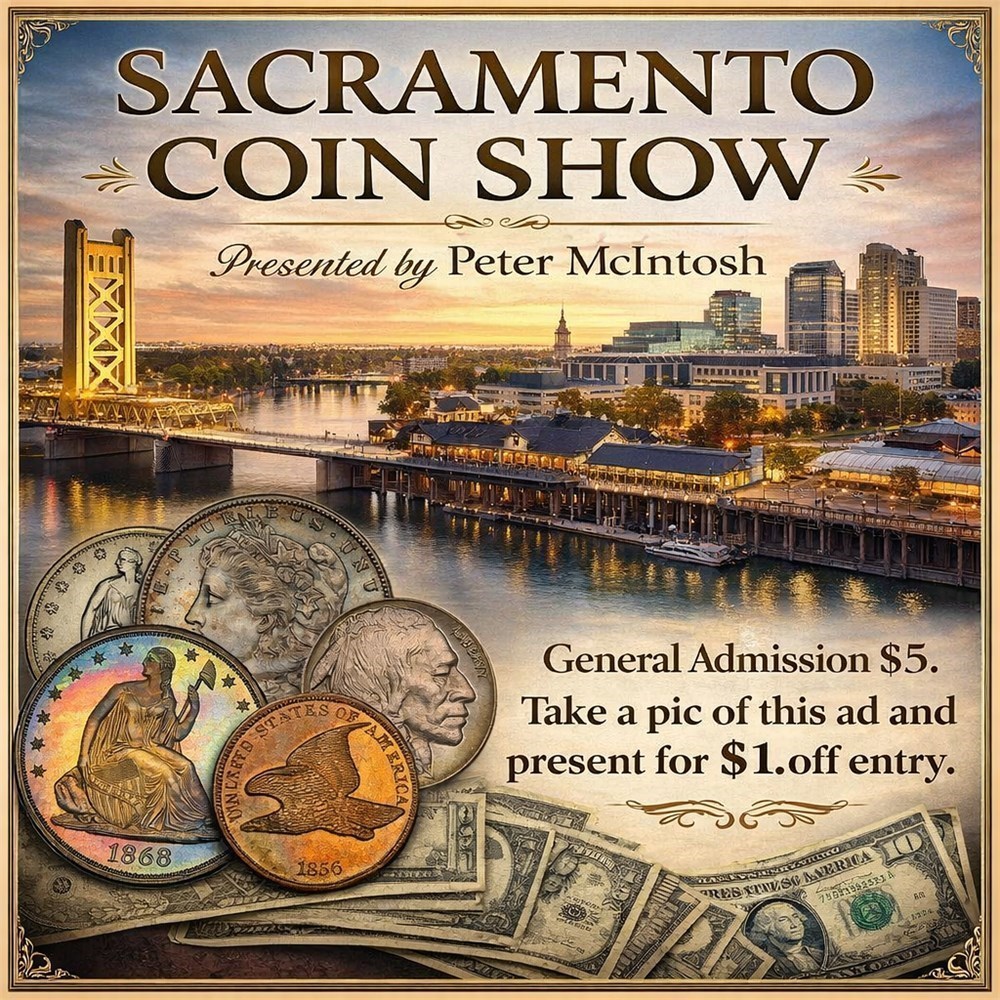 The Lions Gate Hotel is located in the McClellan Business Park, which used to be the McClellan Air Force Base. Conveniently located 1.2 miles North on Watt Ave from I-80. With more than 50 tables of coins and currency, the Sacramento Coin show is a "must attend" event. Collectors and dealers from across the West frequent this show. Don't miss any of these shows!