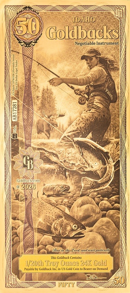 Idaho 50 Goldbacks 2026 Alpha Gold Note 1/20th Troy Oz 24KT Goldback Gem Unc View Watchlist >