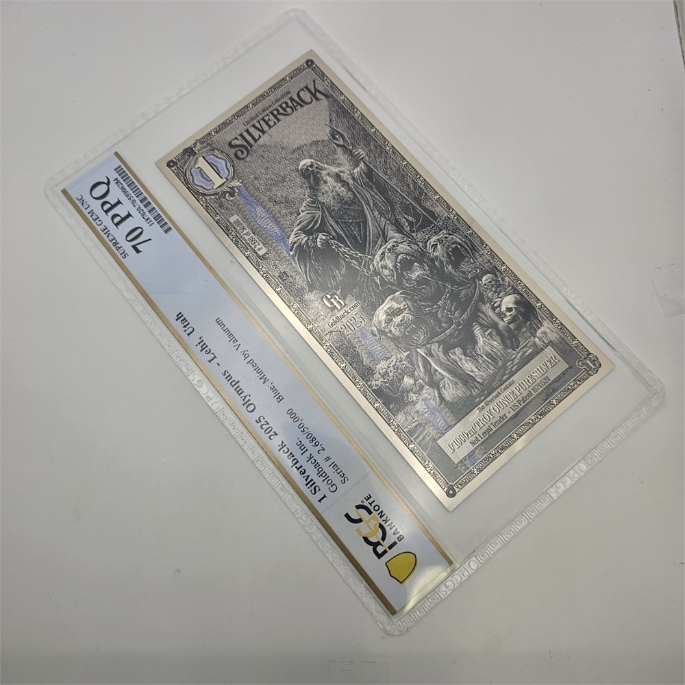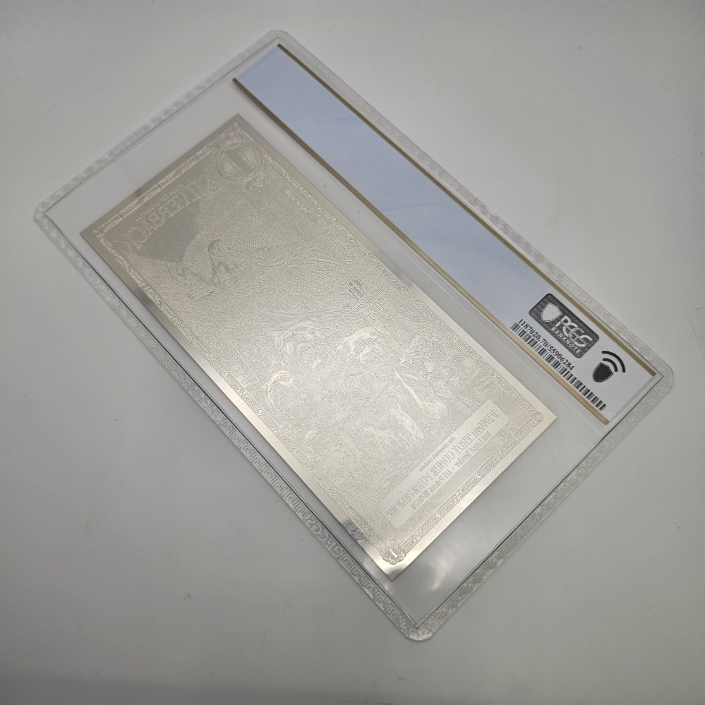 Each note arrives sealed in a protective currency slab and has been certified PPQ 70 (Perfect Premium Quality), the highest designation on a 70-point grading scale. PPQ 70 notes display flawless surfaces under magnification, precise centering, full margins, and pristine original paper quality. Each Silverback contains 1/1000 troy oz of .999 fine silver, offering collectors a unique blend of bullion content and premium presentation.