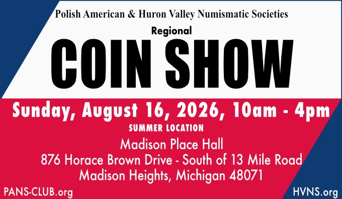 Polish American & Huron Valley Numismatic Societies 2026 Summer Coin Show