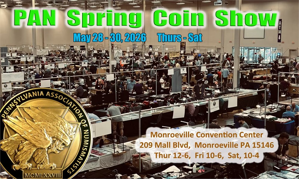 PAN Spring Coin Show Monroeville PA May 28th - 30th View Watchlist >