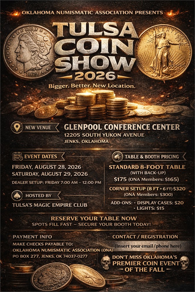 Fall ONA Coin Show- Greater Tulsa Area View Watchlist >
