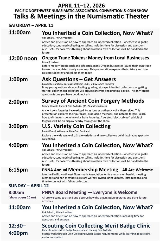 Join us for the Pacific Northwest’s oldest and largest coin show!