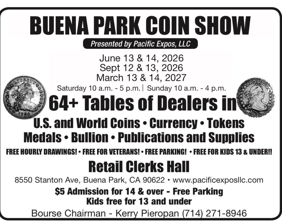 Sat 6-13 - Sun 6-14 Buena Park Coin Show View Watchlist >