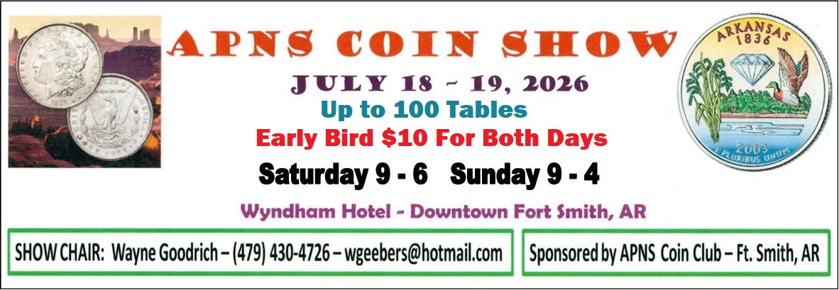 APNSCC Coin Show - Sat. July 18th 9a.m. - 6p.m. Sun. July 19th 9a.m. - 4p.m.
