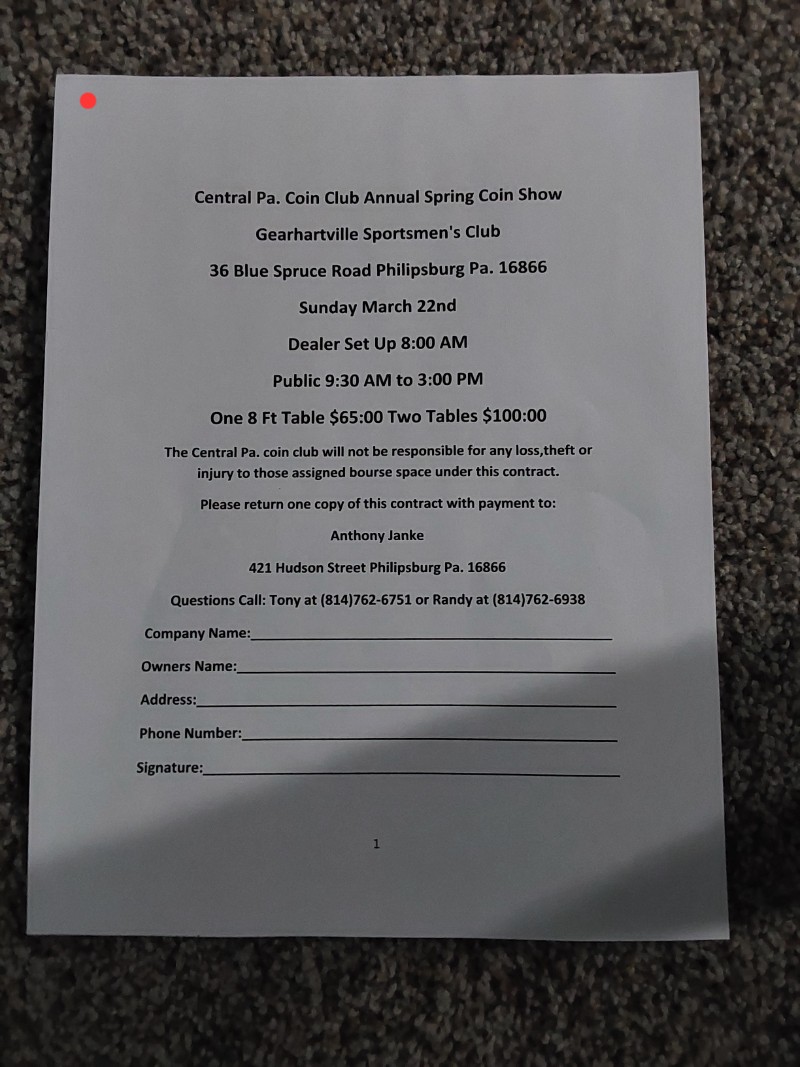 Central PA Coin Club Annual Spring Coin Show.