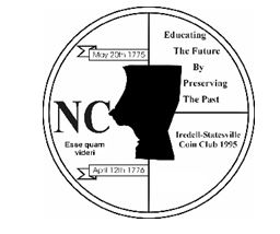 90+ Tables, FREE ADMISSION, Young Collectors Program Saturday 11AM and at 2PM. Hours: Saturday 10am -5pm Sunday 10 am - 3pm. PUBLIC WELCOME! DOORPRIZES! US Coins, Foreign Coins, Gold & Silver Bullion, Numismatic Collector Supplies, Jewelry ISCC RESERVES THE RIGHT TO ADMISSION Please verify the show times and dates before attending the "IREDELL-STATESVILLE COIN CLUB 31st ANNIVERSARY SHOW", as they are subject to change.