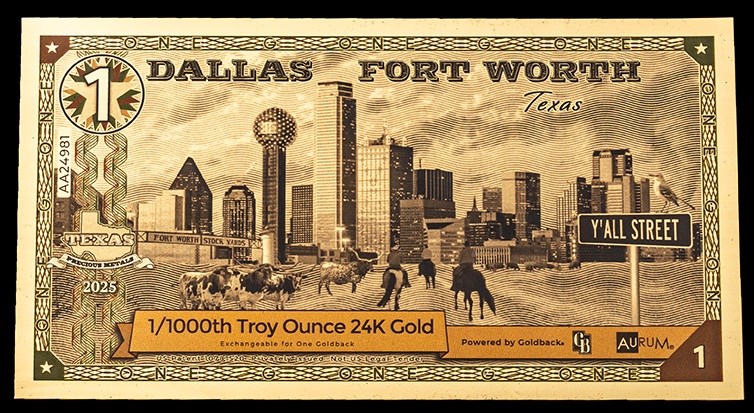 Dallas Fort Worth, TX One Goldback - FREE SHIPPING!
