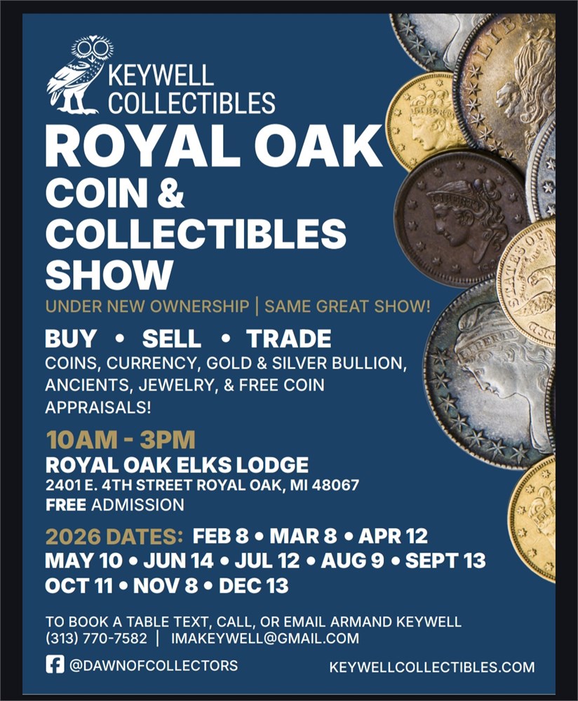 Royal Oak Coin & Collectibles Show Apr 12th, 2026 View Watchlist >