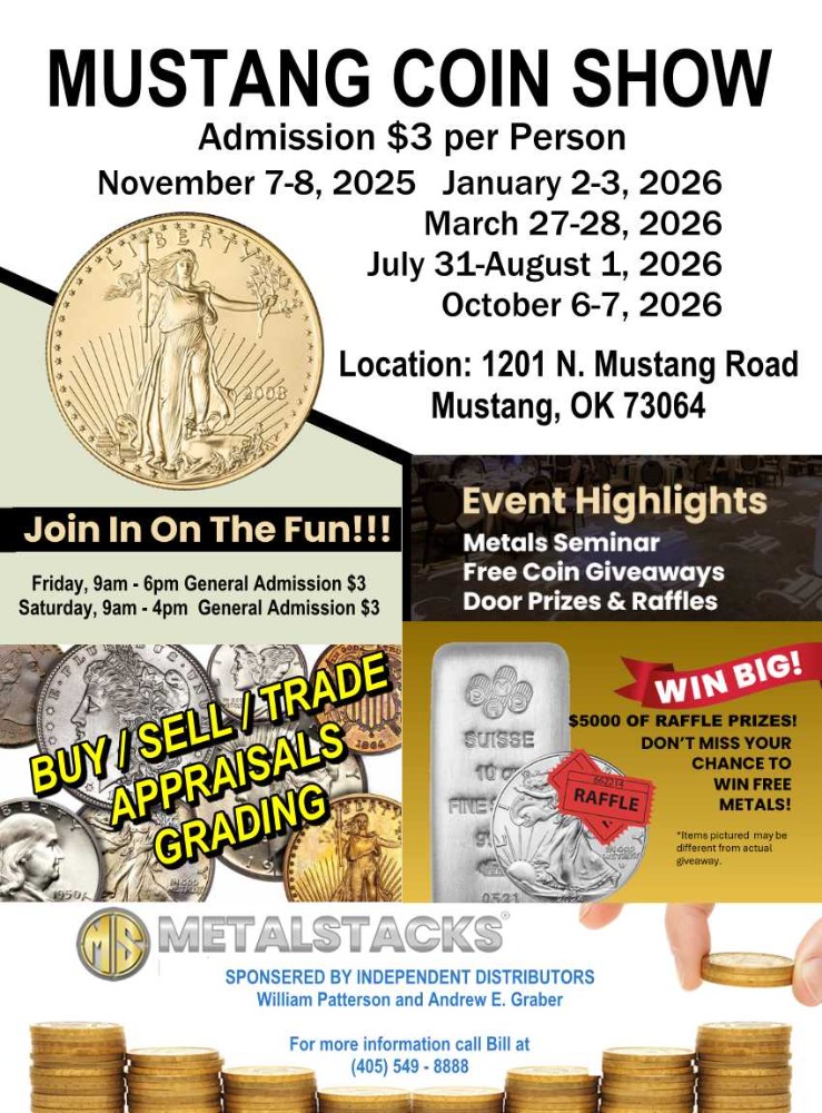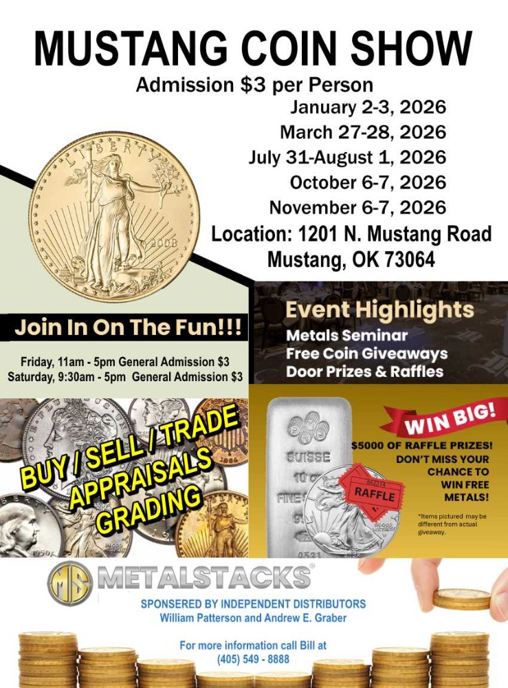 Please verify the show times and dates before attending the "Mustang Coin Show", as they are subject to change.